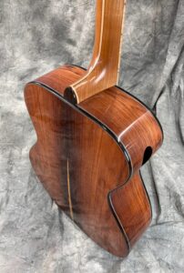 The Drifter is our do everything guitar aimed at people looking for phenomenal sound and a big voice. It features an armrest to make it comfortable to play for hours. The body is made of Honduran Rosewood, and the top is mastergrade Lutz spruce. The rosette is made of spalted maple.
