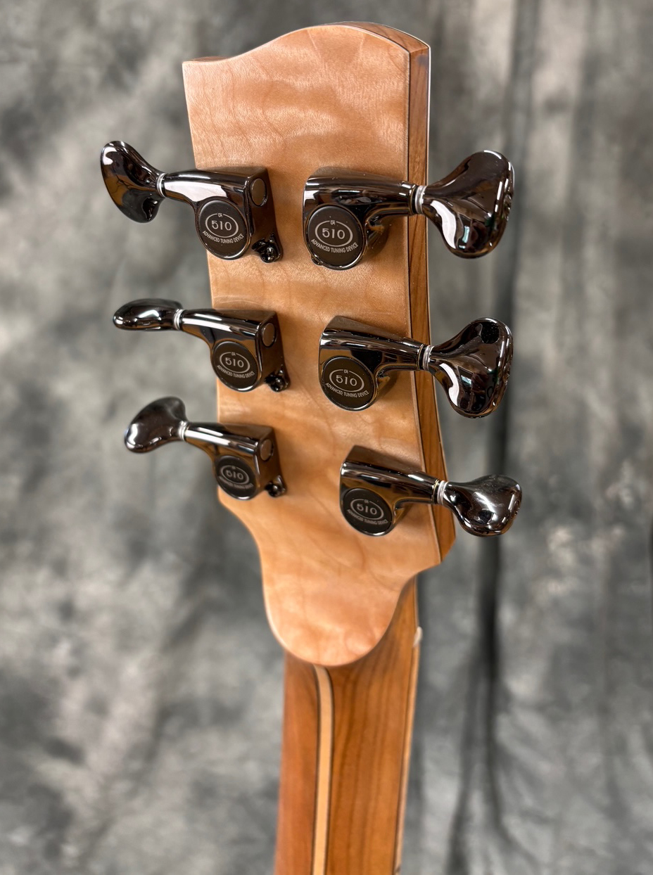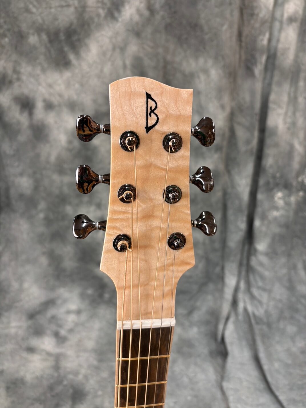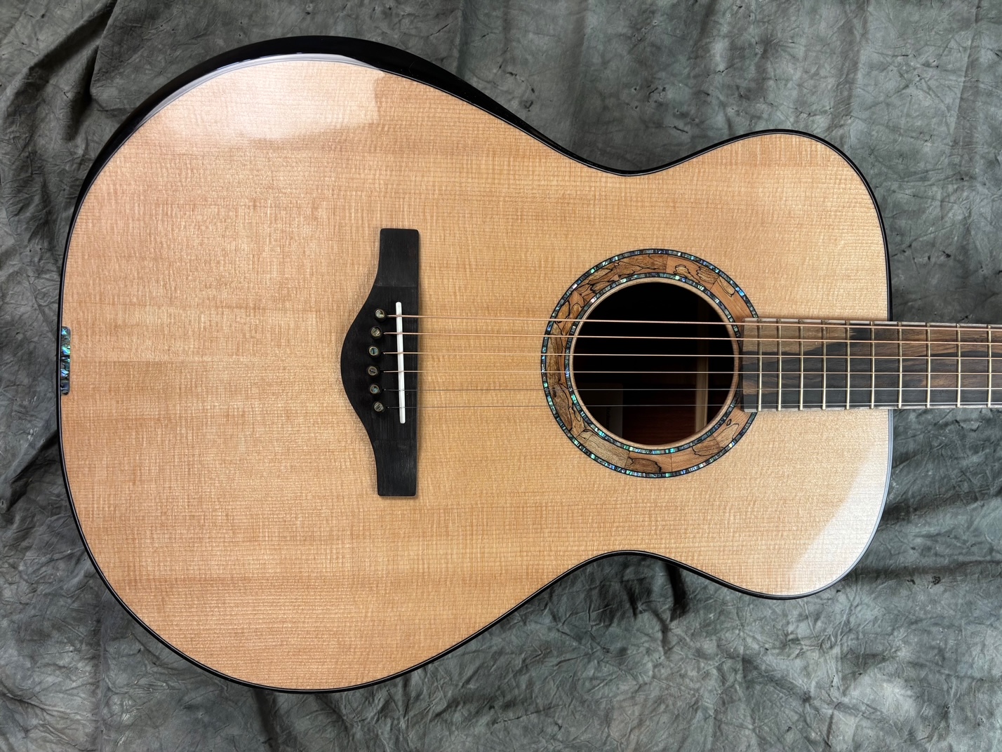 The Drifter is our do everything guitar aimed at people looking for phenomenal sound and a big voice. It features an armrest to make it comfortable to play for hours. The body is made of Honduran Rosewood, and the top is mastergrade Lutz spruce. The rosette is made of spalted maple.